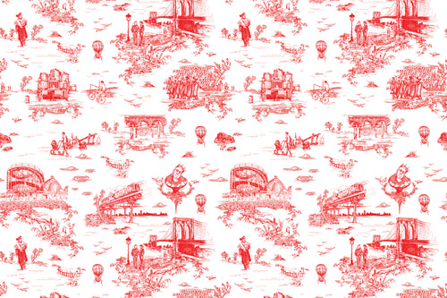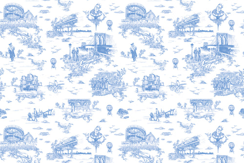 Mike Diamond of the Beastie Boys collaborated with Vincent J. Ficarra and Adela Qersaqi of the creative agency Revolver New York to design a bespoke wallpaper to bring his unique Brooklyn vibe to his brownstone. Brooklyn Toile is a modern homage to Brooklyn in classic French toile de Jouy style, featuring scenes from Coney Island to Borough Hall to the Fulton Mall. With etchings of The Notorious B.I.G., elevated subways, pigeons, the Brooklyn Bridge, and b-boys mackin' with boomboxes, this wallpaper is the King's borough. Na' mean?