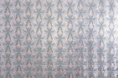 Artist Jane Blevin’s Meteor Flower resembles a vintage Curtis Jeré sculpture or a geometric firework with imperfectly painted lines inspired by Sonia Delaunay’s happy hand. The bursting shapes bounce across the wall with a wonderfully human vibrato due to shimmering metallics uniquely catching light.